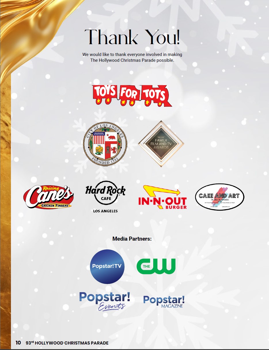 This year, we are especially honored to support Toys for Totsas our official main charity. While many know Toys for Tots for their Christmas campaigns, it is important to recognize that they now operate year-round, helping families and children in need throughout the United States. Their dedication to supporting communities reflects the true spirit of giving that we aim to promote at the Hollywood Christmas Parade.